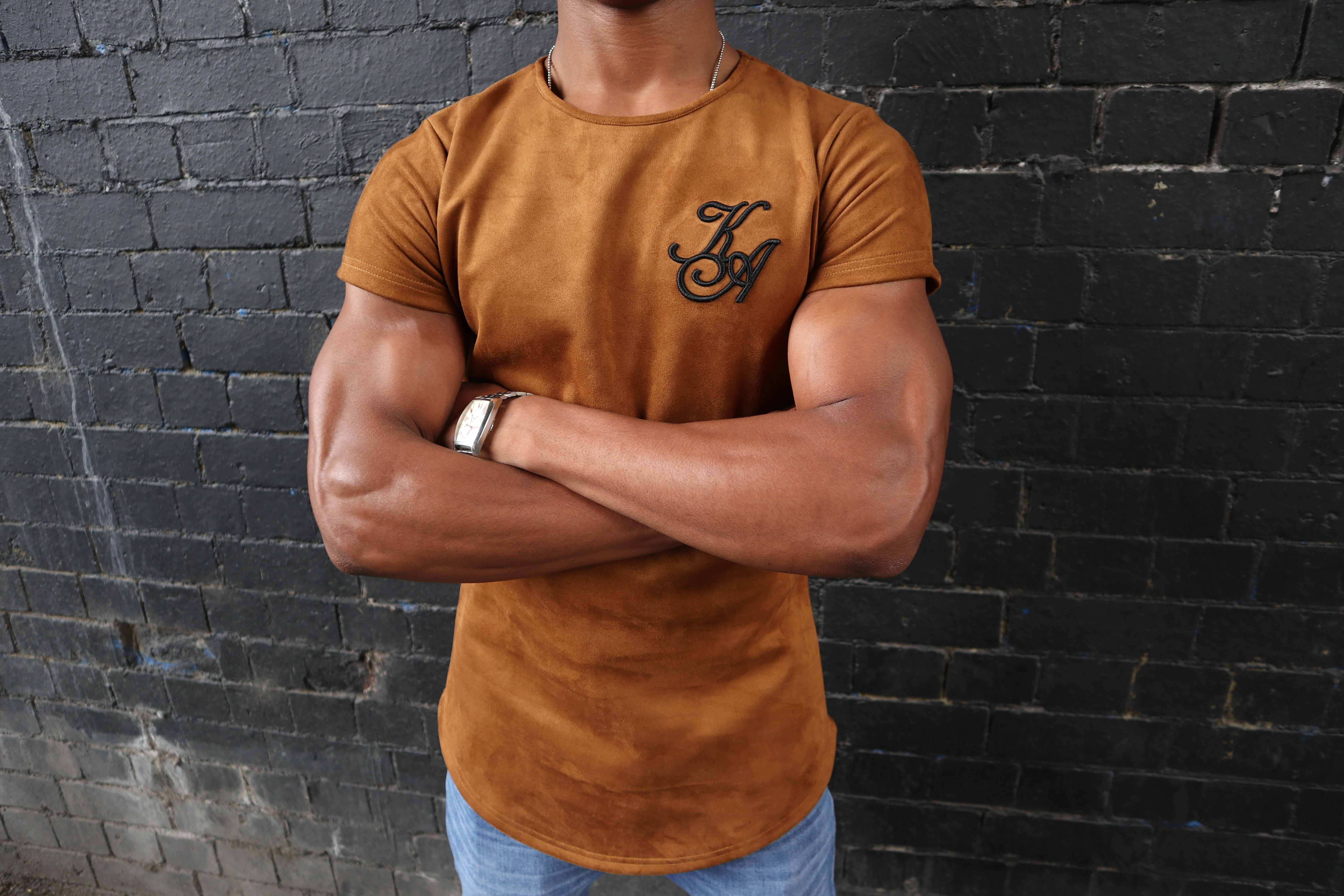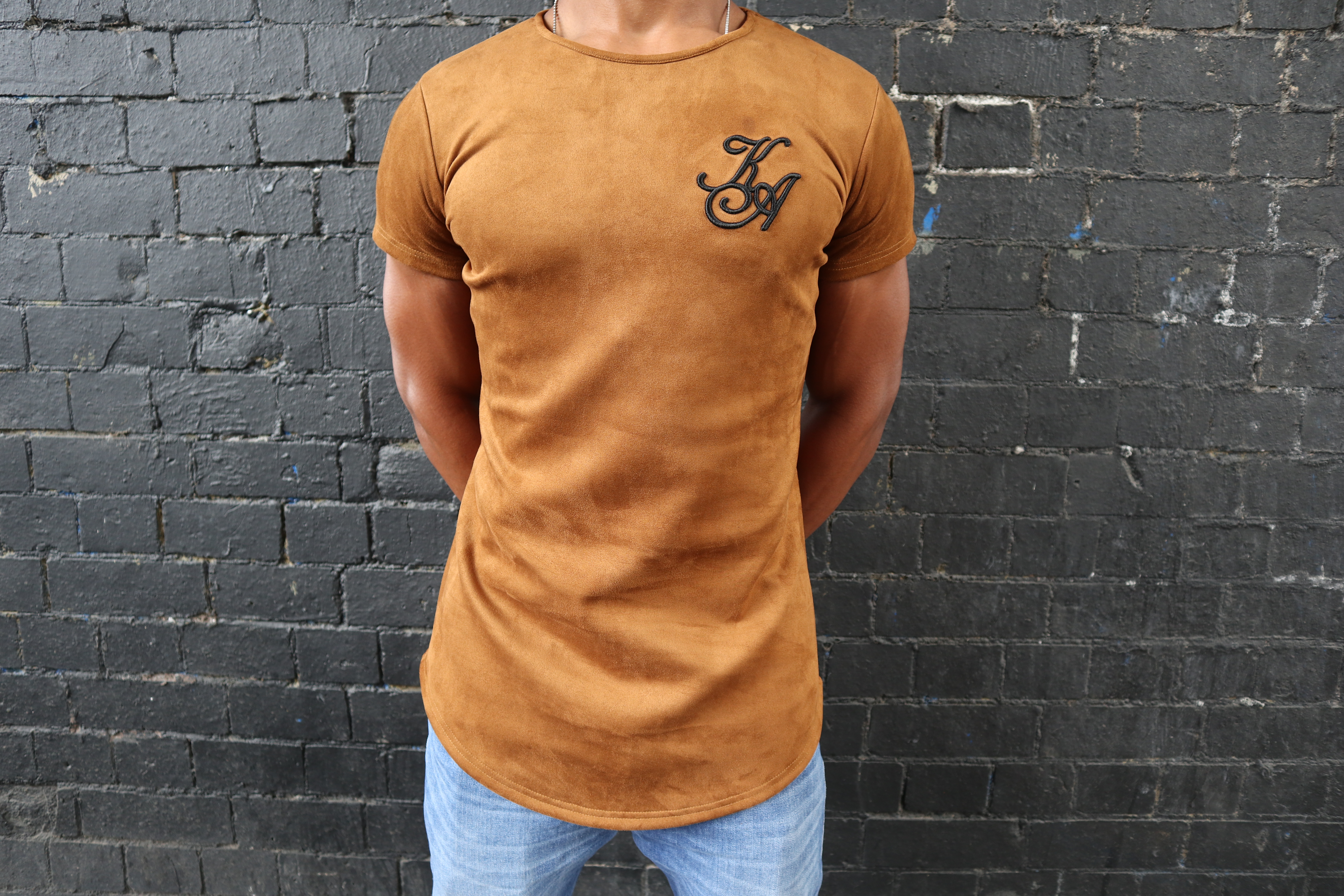 The elegance of this Tee is enhanced by the amazing soft suede material complimented by the long line curved hem. With our 3D KA embroidery o designed by Kaka Apparel. This is a very unique, fashionable and popular style.